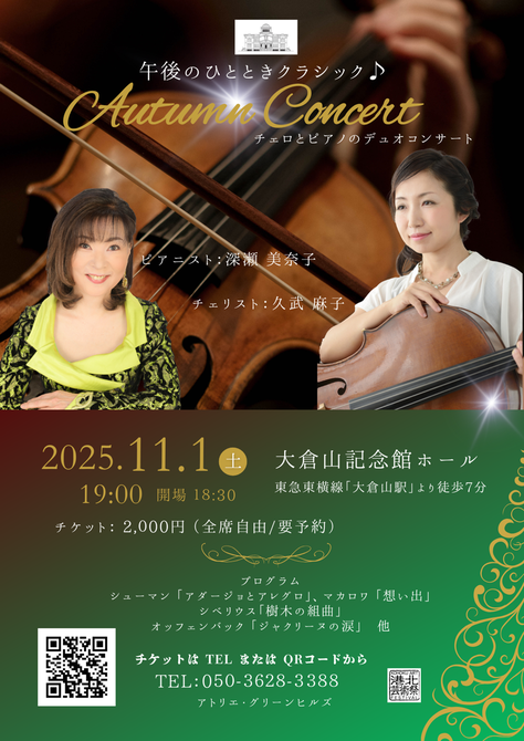 午後のひとときクラシック♪チェロとピアノ2000円(要予約) |