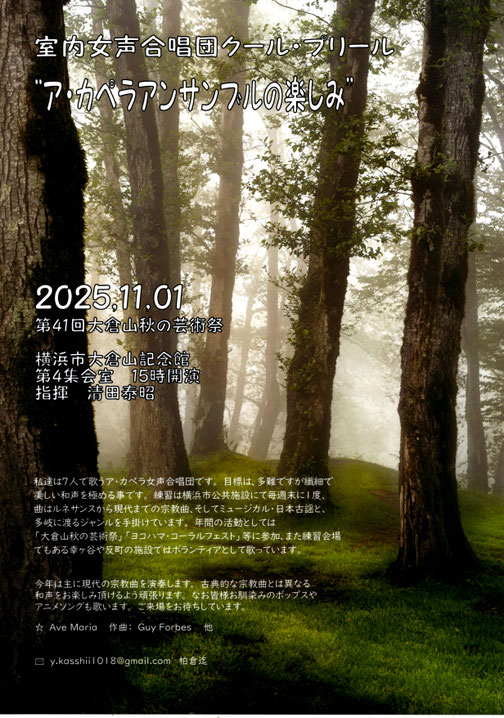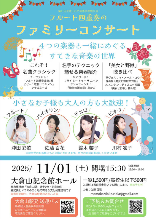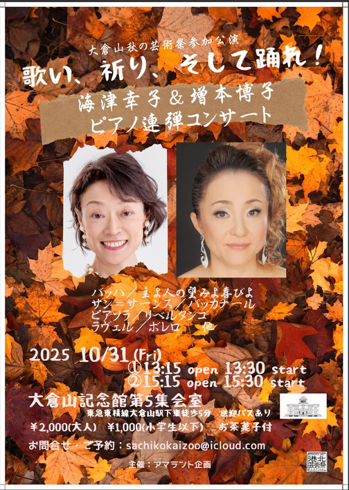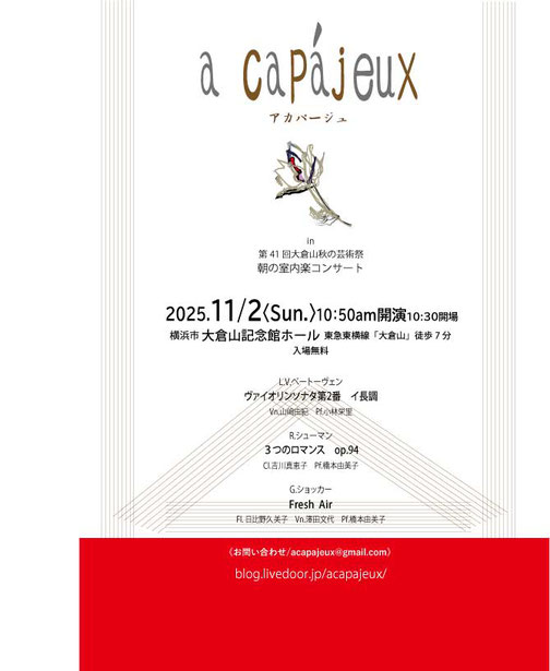 ・2025年ファイナルコンサート開催 11月3日17時開演 大倉山記念館ホール。沢山のご応募、ありがとうございました。出演者の方々が決定いたしました。以下動画は去年のファイナルコンサートの動画です。