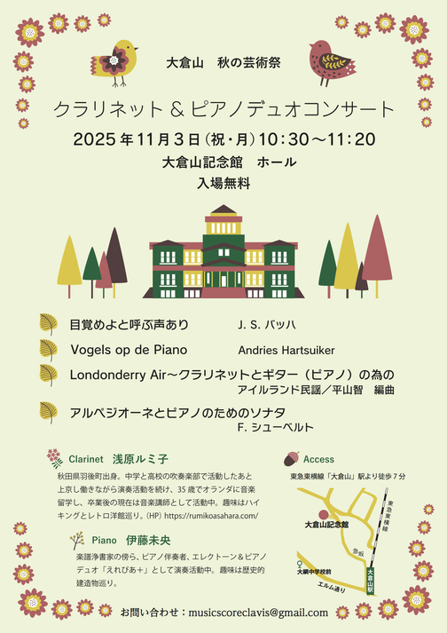 ホール | 10:30 | クラリネット&ピアノデュオコンサート(無料) |
