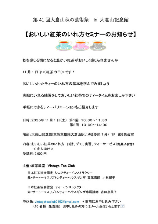 Vintage Tea Club紅茶セミナー 2000円(要予約) |