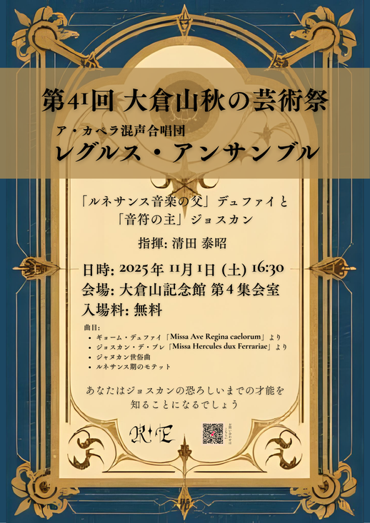 第4集会室 | 16:30 | レグルス・アンサンブル ア・カペラ(無料) |