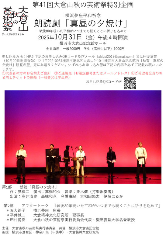 横浜夢座公演 / 朗読劇「真昼の夕焼け」2000円(要予約) |