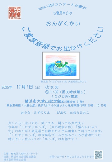 ANYコンサート0歳児から音楽会 ご家族で参加可 1000円(要予約) |